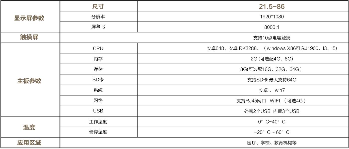 質(zhì)感拉絲金屬;高清畫質(zhì);采用紅外觸摸技術(shù),觸摸極速反應;內(nèi)置WIFI;支持U盤導入內(nèi)容。